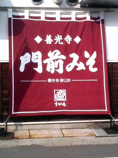 仕事で長野に行ってきました。仕事の合間にちょっと寄り道で善光寺に。平成の大改修!ってなわけで山門は看板のみぽつんと浮いてました。門前の参道にあるお店。 気になる~味噌ソフト行きに目に入り、気になりながら素通り。でもやっぱり帰りに買っちゃいました。 お味は・・・味噌です。はい。味噌です。味噌です・・・おいしくも、まずくも味噌です・・・