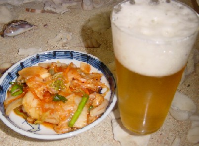 最近、キムチにこってます。以前はキムチは食べませんでした。酸っぱいの食べてから、どうも食べる気がしなくて・・・この前、韓国に行って食べたキムチはめちゃめちゃうまかった。どこで食べてもうまかった。ほんとうまかった。ってなわけで、自己流で作りました。うん!うまい!白菜を一晩塩漬けにし、大根、人参も塩漬けに。んで、翌日、既成のキムチの素に、おろしニンニク、アミの塩辛、ニラ、オニオンスライス、粉唐辛子、カツオ粉を混ぜ混ぜ。白菜を適当な大きさに切って、大根、人参と↑のキムチの素と混ぜ混ぜ。一晩寝かして・・・明日のお楽しみ~