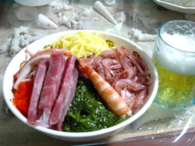昨日は節分でもちろん太巻きを丸かぶり。今日はまたなぜかお寿司。子どもたちは手巻き寿司。自分たちで作って食べるのが楽しいらしく、大はしゃぎ。おやつもパンを作ってました。私はちらし寿司に。先日、伊豆に行って桜海老を買ってきたんで・・・薄焼き玉子を焼いて刻んで・・・ブラックタイガー(えび)をボイルして・・・本日のネタは、本マグロ、えび、桜海老、カニカマ、メカブ、錦糸玉子、とびっこでした。