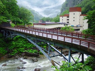 旭川駅からバスに乗って1時間半ほど。なかなかの秘境です。ホテルは古くて、料理も北海道らしさのかけらもなかったけど、安かったから仕方ないか。お湯はよかったね~夜はライトアップされてきれい。近くに名瀑『羽衣の滝』があり、散策も心地よい。マイナスイオン120%!ん?トムラウシ山?先日10名もの死者を出した事故のあった山だ・・・合掌。