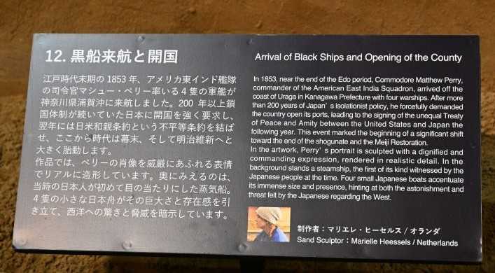 砂で世界旅行・日本ー悠久の歴史と世界に誇る「美の源泉」を訪ねてー鳥取砂丘・砂の美術館の続きです。前回は1.日本神話 国生み・神生み2.弥生時代 邪馬台国3.飛鳥文化4.鎌倉幕府 武士政権へ まで載せましたが、5.奈良時代 鎮護国が抜けてました。多分これがその写真かもしれません。6.蒙古襲来はこちらです。世界遺産に登録された富士山、国宝姫路城、清水寺(本堂と三重塔が写っていません)が表現されています。今回は6から11まで載せました。次回は砂の美術館の最終回です。(つづく)
