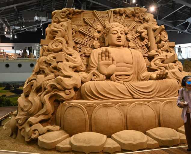 本人は性格的にとても繊細なので正確には1296.8キロらしいのですが、私は大雑把ですので1296キロにしておきます。先日4泊5日で出かけた鳥取旅行をアトランダムに載せようと思っています。相方は今回で4回目のドライブ旅です。旅1日目は砂の美術館からです。前回私と一緒に出かけた時は2024年第15期フランス編でした。その展示は2024年5/20の「3泊4日1,227キロドライブ旅・その1砂の美術館・前編に載せてあります。今回は第16期展示「砂で世界旅行・日本」ー悠久の歴史と世界に誇る「美の源泉」を訪ねてー です。2025年4/25(金)から2026年 1/4(日)まで展示だそうです。スケールがでかいので今回もここから載せます。一期一会のアート「砂像」は12か国20名の世界で活躍する砂像彫刻家たちが作りました。総合プロデューサーは日本人の砂像彫刻家・茶圓勝彦氏です。8つの頭を持つ大蛇のヤマタノオロチを退治するスサノウの姿を少し右から写すとこんな感じです。そして古代出雲大社が遠近法で上の方に作られてます。階段の横から写すとこんな感じです。裏側はこんな感じです。弥生時代 邪馬台国です。(つづく)