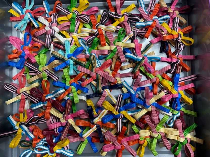 昨日ダンスの先生に頂きました。足リラックスパッドは私の場合、外反母趾がひどいので、少しでも和らげられるようにと。自宅に帰って早速、足の指にはめてみましtが、これが結構難しいのです。なぜならいつもハイヒールを履くので5本の指がくっついていて指と指の間にピンクのスポンジが入らないのです。💦やっとの事、パッドを入れてしばらくそのままで作業しました。もう一つはボディローラーです。ふくらはぎや足裏をマッサージするには快適なんですが、先生は私に背中に当てて猫背気味になった背中をしっかり伸ばして矯正するために使いなさいと言われました。最近寒くなったのと、加齢のせいで肩が前に巻き気味で、どうしても背中が丸くなるので以前のように胸を張って背中をそるぐらいにしてほしいからだそうです。ところが、硬いので背中が痛いんです。でもこれも慣れですので、毎日できるだけ使って背中を伸ばそうと思っています。・・・やっと表編みと裏編みができたストラップ160個分のすべての長さを切りそろえることができました。あとはボンドで接着してお花を完成させようと思います。・・・今朝は9時半からのダンスレッスンが終わったら、校区の小学校へ直行して、ボランティア登録している人たちとこれからボランティア登録をしようと思っている人たちが集まって10時半から交流会がありますのでそれに参加しようと思っています。