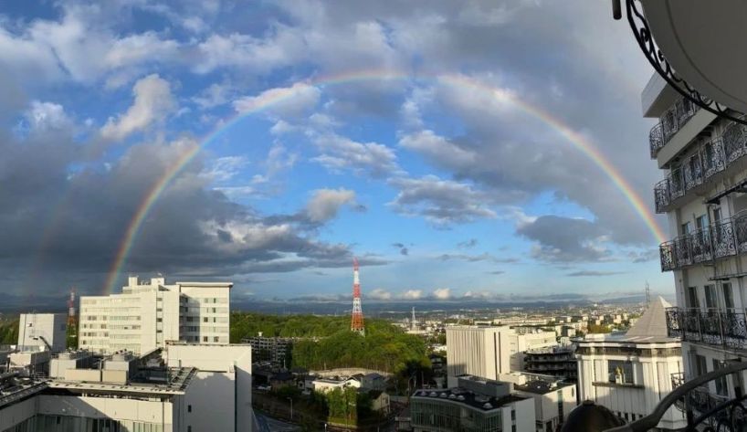 こちらは愛知の娘が仕事場から眺めて撮った虹です。