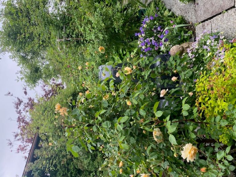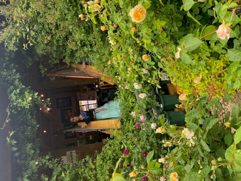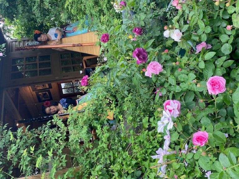 午後のひと時、美しいお花に囲まれて