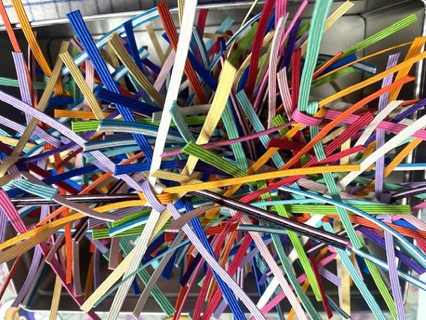 相方が「にじいろ会ストラップ」をせっせと作り、