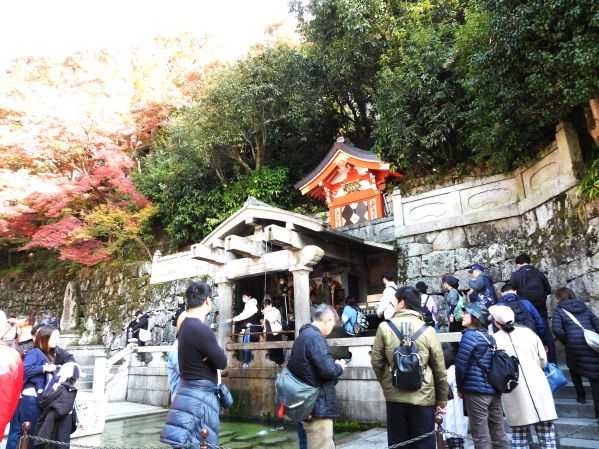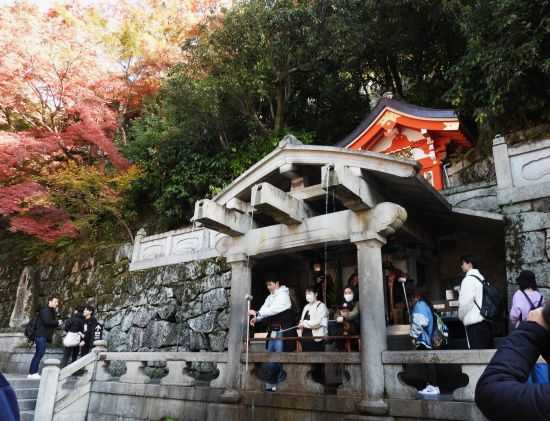 清水寺の音羽の滝で3筋に分かれて流れています。
