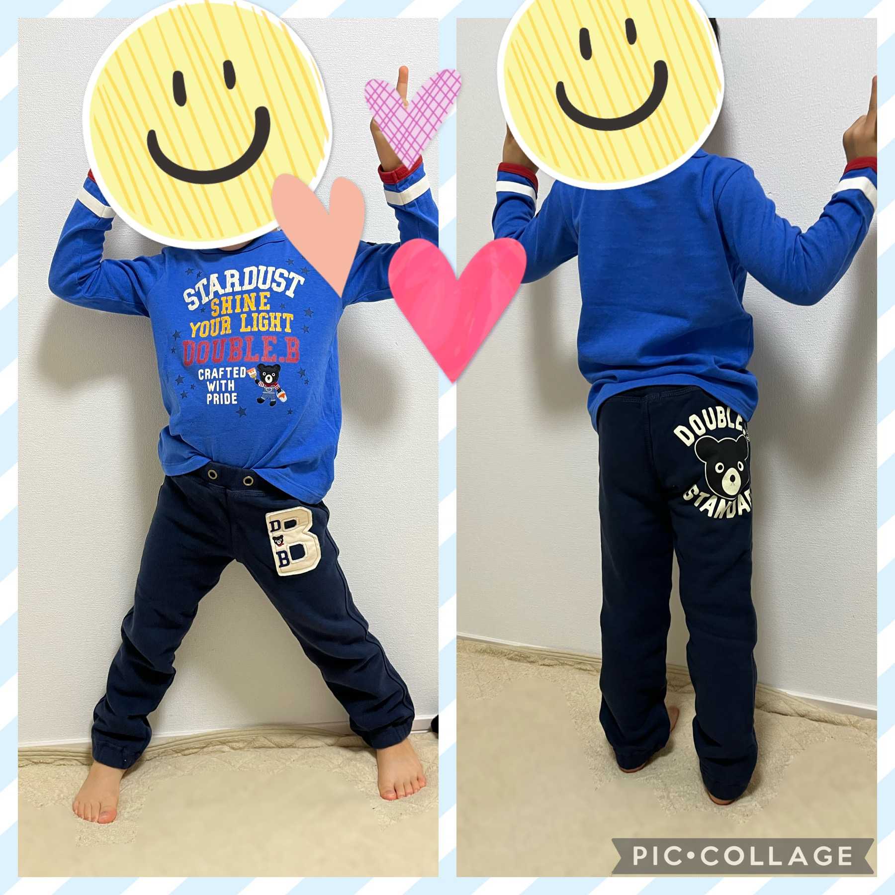 身長108cmがパンツ&ロンT 110cmサイズを着用してますが、特に裾を折ることなく着用できました🙆‍♀️
