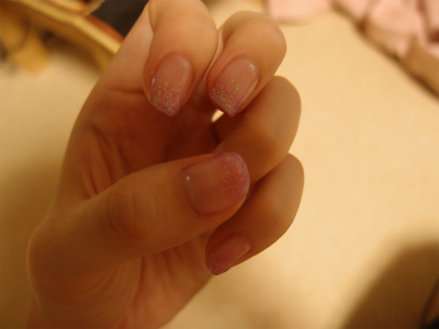 今日は月食だったから、お父さんが送ってってくれず高速バスで行きましたバス待ちの時にみんなが太陽見てて私本当に興味なくてつけまつげなんてつけてたら知らないおばあさんにあんた非国民だね、見ないと損するから!!とか言われサングラス?貸してもらって見ました知らないおばあさんありがとうございます、おかげで私は非国民にならずにすみました! うちの学校遅刻や欠席したら即退学なんだけど今日高速が10キロ渋滞していたみたいで『このバスは高速を降ります』とゆうアナウンス・・・・マジでと思っていたら乗客のサラリーマンが怒りだし、バスがすごいスピードで走りだしてなんだか今日は生きるか死ぬかの登校だった気がする・・・泣 伏見が最寄りの駅なんだけど、バスの速度じゃ遅れると思って一個前の栄で下車それから超走ってギリギリセーフでしたあぁ本当に今日は死ぬかと思ったこゆ時足が遅い人って最悪だよね~ さて今日と明日は実技テスト生徒同士でやりあうんだけど私は今日やってもらう側甘皮のケアとハンドマッサージとラメグラデーションのテストです一か月でもうこんなにできるようになったなんて感動 見える?爪の先がラメでしょこれ結構難しいんだよね、グラデーションにするのがでもこれだったら合格だよね明日は私の番!!こんなに上手にできるかな・・・・ とにかく甘皮のケアが苦手だからお父さんにでも練習させてもらおー もっと色々覚えて早くみんなにやってあげたいな