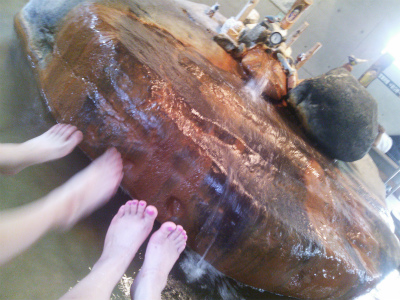 この前、つっていが帰ってきたので夏の思い出にプチ遠出しました 行先は、とりあえず涼しい所とゆう適当なプラン笑郡上のほうへどんどん走って行ったら道の駅に遭遇してなんと足湯が無料だったので入ってきました運動神経がない私は足が上げれず、ぶれてます涼しい所を求めて行ったはずが、この足湯の暑いのなんのって二人で超汗かいて即出ました笑こんな時期に他に足湯に入ってる人なんていませんでした、はい、 無駄に汗をかいたうちらは、ソフトクリームを食べることになんと!ここのソフトクリーム、貯金箱みたいのが置いてあって300円入れてセルフで作るとゆう、なんてゆうか素晴らしい田舎ならではの考えなシステム!!!超ーおいしそうな鮎の塩焼き発見私、内臓が好きなんでつっていの分も内臓だけ頂いたうん、おいしかったよ500円とゆう高値なのは、さっきのソフトクリームでズルする人がいるからかな・・・・笑 次は高山方面へ行ってきました川を眺めながら明宝フランクを食べましたん~とても癒されました お土産屋さんでつっていはなぜか笛を購入し、川に向かって吹いたら予想以上にうるさくて大人に怒られました。。。笑 うちら高山まで来て何をやっているんだ!笑まあ、そんな感じで楽しい夏の思い出でした