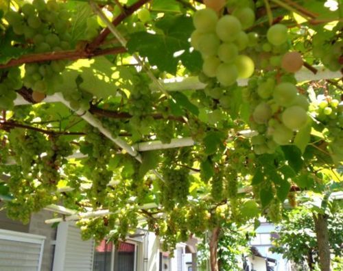 そして、窓辺の遮光用の葡萄(デラウエア)が鈴成りです。