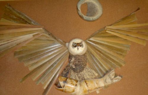 新作「フクロウの川魚漁」壁掛けを製作中です。![]()