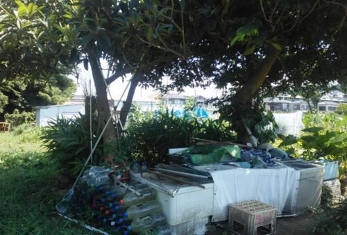 水桶があって、そこには15cm程の金魚が10匹程いて、