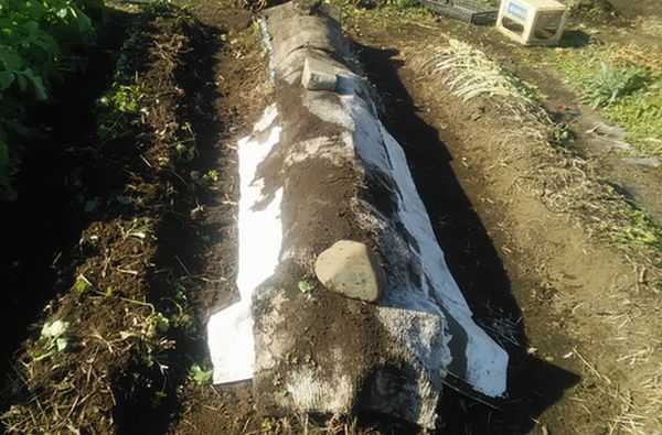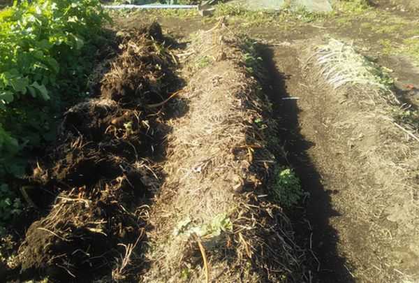 で、真ん中の畝は、土盛りとシート掛けして防寒し、越冬畝としました。