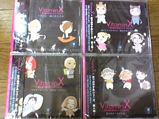 Vitaminの新キャラソンが出るそうですねしかも瞬&キヨ、ゴロちゃん&瑞希のユニットO(≧∇≦)O『RUBY DISC』-ナナキヨ-(七瀬 瞬&仙道 清春) ¥2.520(税込)09.03 発売『SAPPHIRE DISC』-GAM。-(風門寺 悟郎&斑目 瑞希) ¥2.520(税込)09.03 発売めちゃめちゃ楽しみ~~~q(≧∇≦*)(*≧∇≦)pどうやらソロの曲もあるみたいですね♪曲名も近々発表だそうで^^羊でおやすみシリーズだけでもかなりビックリだったのに、すっごい嬉しいですユニット名は思いっきりジャニーズから取ってますね(笑)こうなったらついでに、B6として6人でユニット組んで曲出してくれませんかね(真剣)すっっっごい聞きたいんですけど!某動画投稿サイトのNEWSのCMパロ動画を見ていたら、もうNEWSのPVが自動的に頭のなかでB6に変換されてしまうようになってしまって・・・(イタすぎる)B6があんなんやったら悶え転げるッ!あ~ほんとに出してくれないかな・・・・・