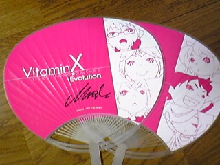 ただいま、フルバースト夜公演の入場待ちをしているところです。 昼公演、最っ高でした!!! 過去こんなにイベントで叫んだことがないほど 叫びました! 詳しくはまた後日じっくり書きたいと思いますが、 瑞希とキヨ、瞬が新曲歌ってくれました!!!o(≧∀≦)o しかも!今秋にはVitaminYというミニゲーム発売! 来春にはVitaminZ発売!! B6が教師として帰ってくる!!!! すごすぎだVitamino(≧∀≦)o 写真は会場て配布されたうちわです。 このサイン、誰に書いてもらったと思います?? 原画の前田さんが公演を見にいらっしゃってたようで 会場で偶然見かけたのでサインをお願いしました! すごくお優しいステキな方でした! 宝にします!(*^o^*) では、夜も燃え萌え尽きてきます!
