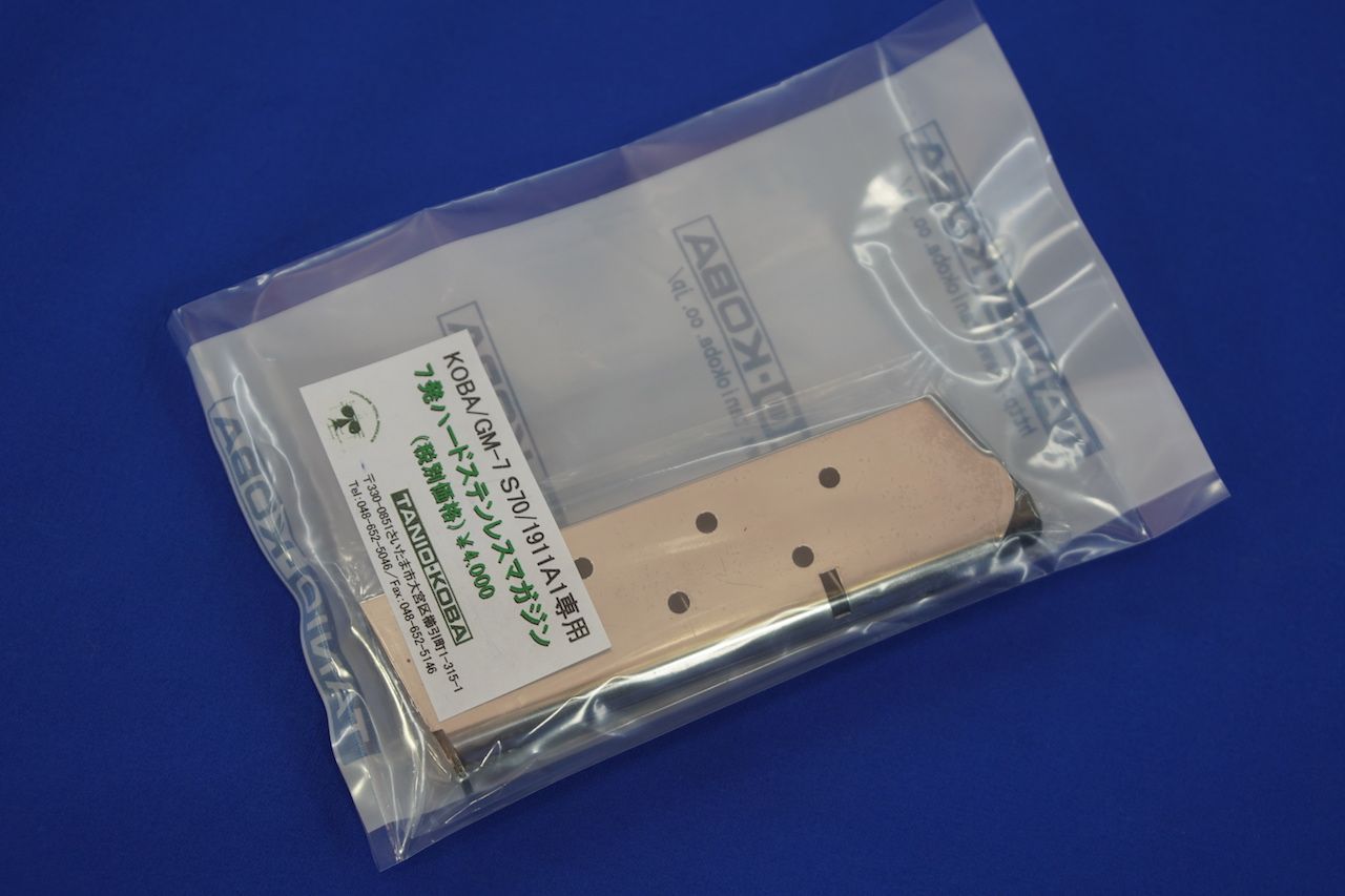 明日はXmasイブ兼、有馬記念。今回は、みんな幸せに終わりたいからキタサンからかな。忖度できない外人と恩義があるデニムアンドルビーを絡ませる感じになりそうですが、まだまだ考えないとwさて今回も最近入手した「タニオ・コバ GM7.5用ハードステンレスマガジン」です。従来のマグバンパー付きの8連では無くGM7.5用にわざわざ7連で新たに作られたノーマルタイプのステンレスマガジンです。最近のモデルガンのスチールマガジンは以前と違って、発火させてもサビが出にくくなっているんですが、ステンレス製と言われると安心感が違うんですよね。ハードステンレスマガジンと謳われていますが、スチールマガジンとケースの厚みに違いは感じられません。硬度の違いもありそうなので、実際の強度は高くなっているのかもしれません。マガジン背面の溶接部分は、スポット溶接では無く面で溶接されているのでマガジンが開くことはなさそうです。発火前提なので奮発して2本も手に入れましたが、気分的にはM1911A1ミリタリーにはステンレスは使いづらいですね。。他のカスタム系ガバにはノーマルマガジンよりはマガジンバンパー付きの方が似合うし、一番合うのはやっぱりシリーズ70ですね。マガジンボトムには、スチールマガジンと同様「COLT .45 AUTO」の刻印が入っています。やっぱり70年代以降のコマーシャルモデルなら、こうして見ても違和感はないですね。このマガジンでき自体は凄く良くて、マガジンキャッチを押すとスルっと抜けが良いのも魅力なんですが、汎用性がありそうでないのが難点ですね。次期ニューモデルがコマーシャルタイプになれば、大丈夫?今日はここまで!!!!!!新しくトイガンサイト始めました→お座敷SHOOTERS.comフェイスブックページ始めました→お座敷シューターのトイガン日記人気ブログランキングへ←ポチッとお願いします【新品即納】[MIL]タニオ・コバ(TANIO KOBA) GM-7/7.5対応 7発ハードステンレスマガジン(20171212)タニオコバ GM-7/7.5対応 7発 ハードステンレスマガジン [取寄]【Tanio-Koba(タニオコバ)】マガジン (モデル) GM−7 用(7発)/タニコバ【Tanio-Koba(タニオコバ)】モデルガン用マガジン GM−7 用(エイトマキシ Silver)/タニコバ
