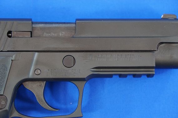 右側フレームには「-SIGARMS INC.EXETER NH- FRAME MADE IN GERMANY」の刻印が入っていますが、これは1985年から2007年までのSIGARMS時代の物(現在はSIG SAUERに改名)