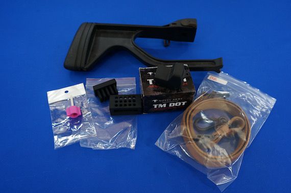 今回の戦利品。「ノーベルアームズ」ブースで入手した「TMドット」。「ショウエイ」ブースで手に入れた「FG42スリングのB級品」。「LOWSHIP」ブースで入手した「ステアーTMP用の実銃用ストック」は大バーゲンの超掘り出し物でした。