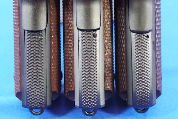 ハンマーの形状は、どちちらかというとCAW製のハンマーに近い形状ですが、チェッカリングの入り方とかが微妙に違います。MGC製はチャッカーのスペースが短くて、チェッカリングが一番細かくなっています。