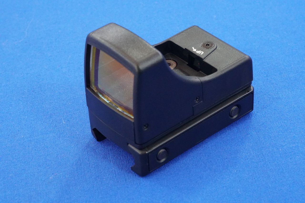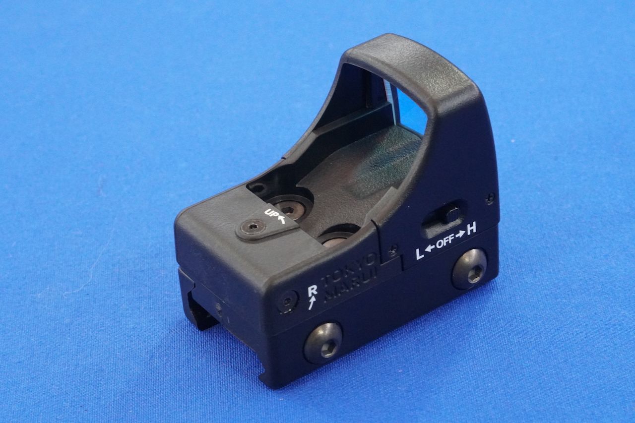 マルイが独自開発した、最近ブームのマイクロドットサイトです。樹脂製ボディとポリカーボネート製レンズで軽量かつ対弾性が高いのが売りです。別売のマウントでハンドガンのスライドにも乗せられるようになっています。