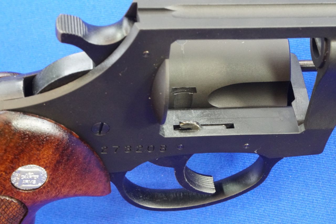 ブルドッグ.44をモデルアップするために作られたバレルは、独特の形状のフロントサイトがシャープに再現されていて、超魅力的です。「BULLDOG.44 SPL.」の刻印が入っている細身のバレルは、もっともブルドッグらしさを感じます。