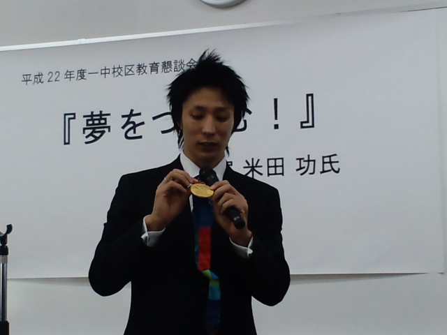 体操の元 金メダリスト『米田 功』氏を講師に迎え、『夢をつかむ』をテーマに講演いただきました。。。。