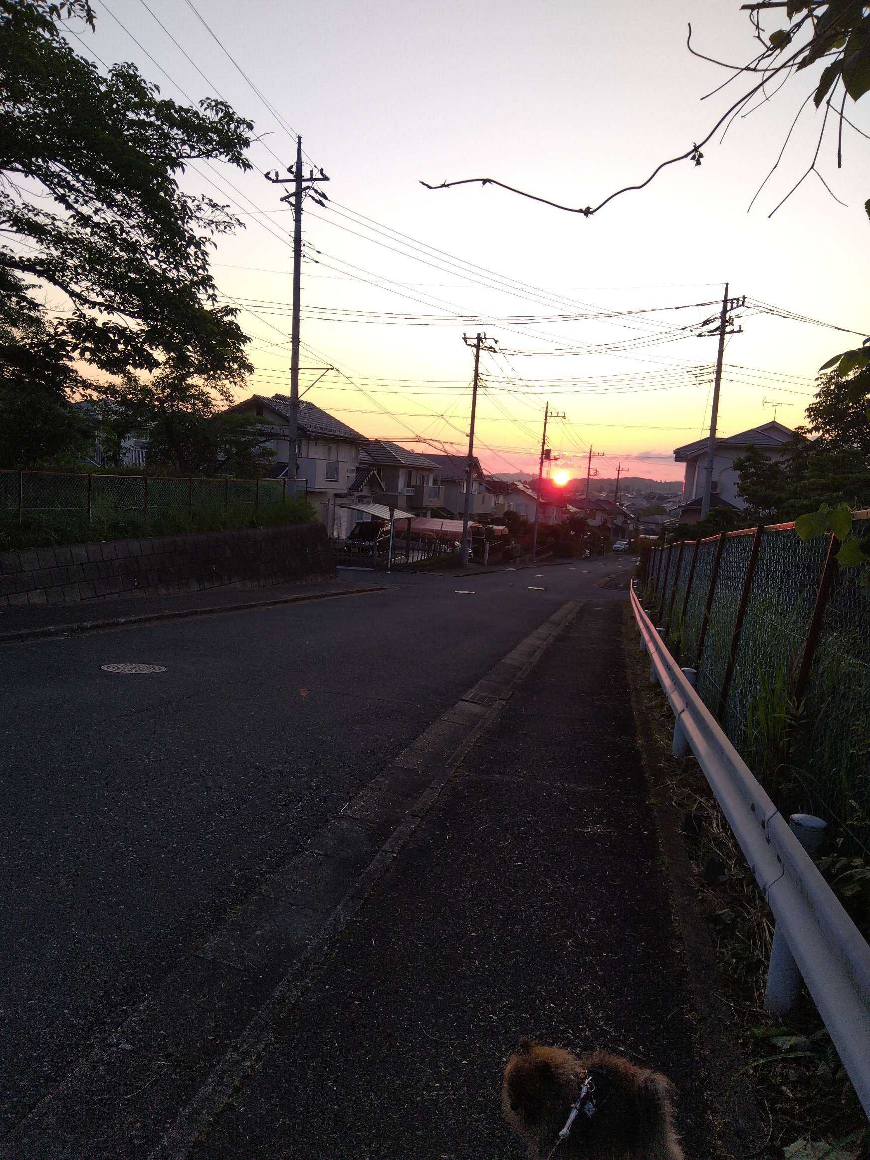 暑さもゲリラ豪雨も避けながら、バル🐾はゴロゴロして元気に過ごしてます。毎朝4時台の散歩頑張ってます😰火曜日、いつものコースを超スロー🐢でのんびり歩くと西の空に月が…バル🐾は座り込んでくつろいでます😓いつも前半はこのペースなので時間がかかるけど楽しいね♡鳥のさえずりを聞きながら、しばらく歩いて振り返ると🌄気持ちいいね。バル🐾も見つめてました。こんな調子での散歩、歩数は2400歩ほど🚶試しに、今朝アプリで距離を測ってみると1kmを30分も😵これからも大切な時間を、楽しみながら穏やかに一緒に過ごしていきましょうバル🐾