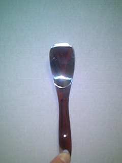 自分で言うのもなんですが続いていますな~ブログ。正直飽きっぽい自分がここまで更新が続くとは思いませんでした(笑)自分をほめてやりたいですな(笑)さて今日は我が家の秘密兵器を紹介!これです。これはダ○ソーのバターナイフ(スプーン?)っす。このサイズが菌糸瓶の交換に大活躍。こいつで上面の菌糸を掻き出し、中央に刺してねじると幼虫の入る穴がすぐ開きまする。こいつは使えるッスよ。おすすめです。あつ中日負けた!が~ん