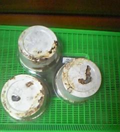 ヤバイです。現場で叫びすぎて、ついにのどが…。痛い箇所から考えるに、どうも声帯が腫れてる模様。先まで何とも無かったのに…。酒飲んでからおかしいぞ~(汗)毒でも盛られたか?(激爆)どちらにしても現場では声がでてなんぼ。今日も早く寝ますクワネタ?ゼリー替えました!あとオオクワ&ホペイ何ペアかを外の物置へ。越冬です。まだ何ペアかは残っていますが、ぼちぼち準備します。すげ~。結構やりました