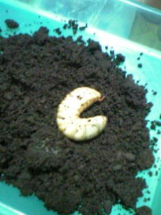 先日、この子のお嫁さんが蛹化しているのを確認しました!累代あきらめてたんだけどね~。気になって掘ってみたら出てきました。焦って、ついつい露天にしちゃいました。後は羽化と後食を待つばかり。♂が先に羽化しちゃうとは珍しいパターンではないかな?後は★にしないようにしなければ!これが一番ヤバイ(笑)