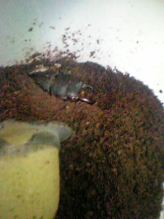 久々の虫ネタです。先ほどまでmilagさんからいただいたエレファスのマットを替えていました。なんせ1ダースいますので、交換しても交換しても終わりませんしかも2L近いマットはすでに食い尽くされていました大慌てで交換!!!マットの消費量が凄い!!あっという間に20L使い切ってしまいましたまた120L発注だ~でもかっこいいから許すあっ写真…撮り忘れちゃった!!