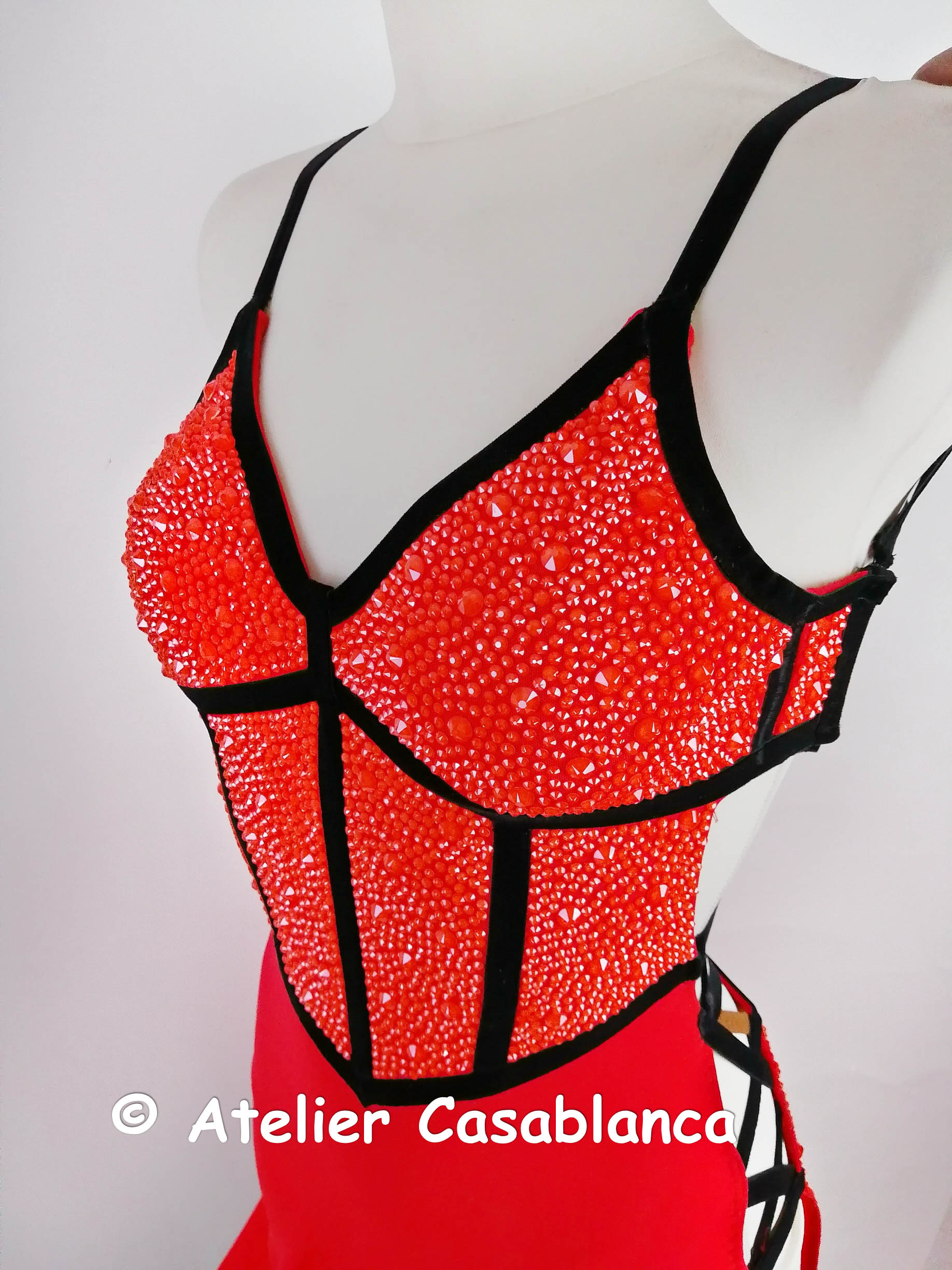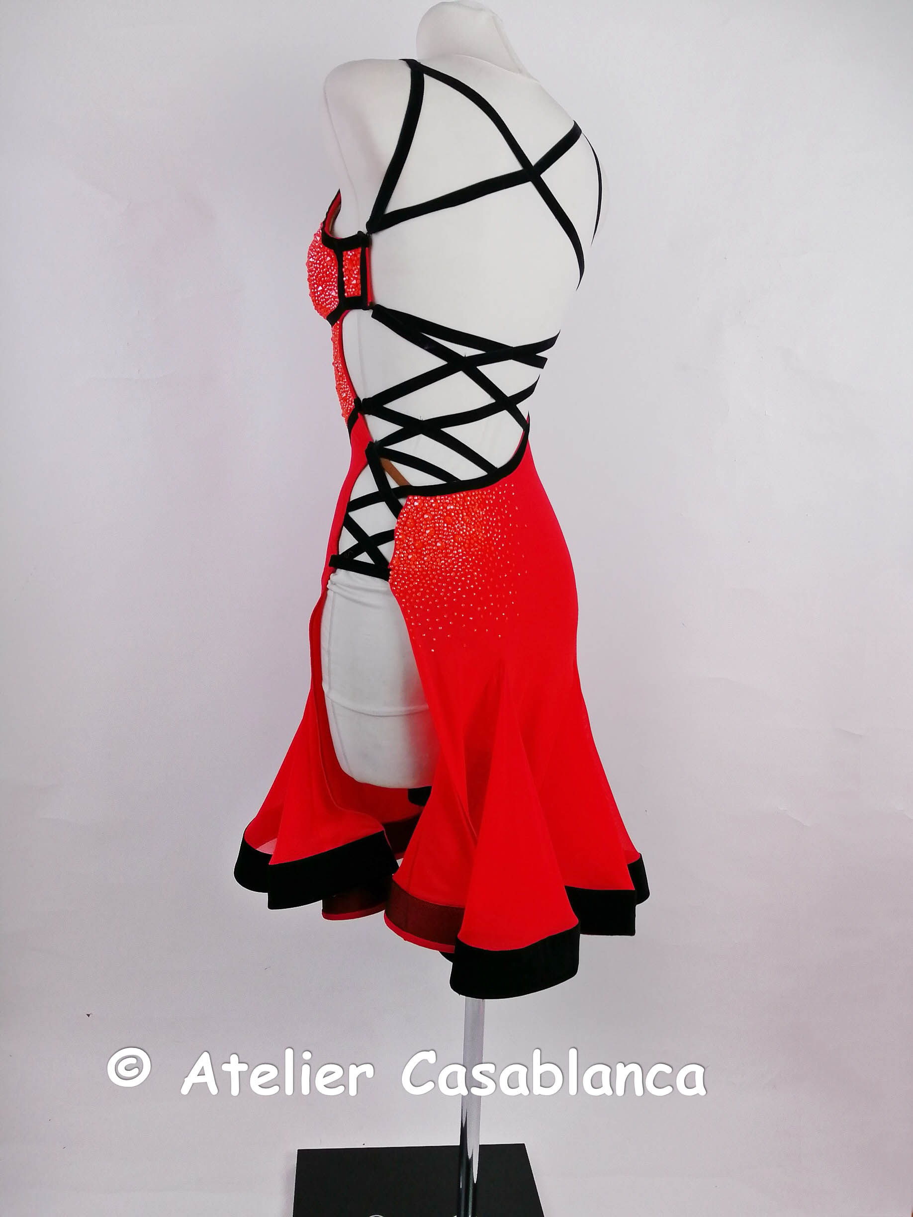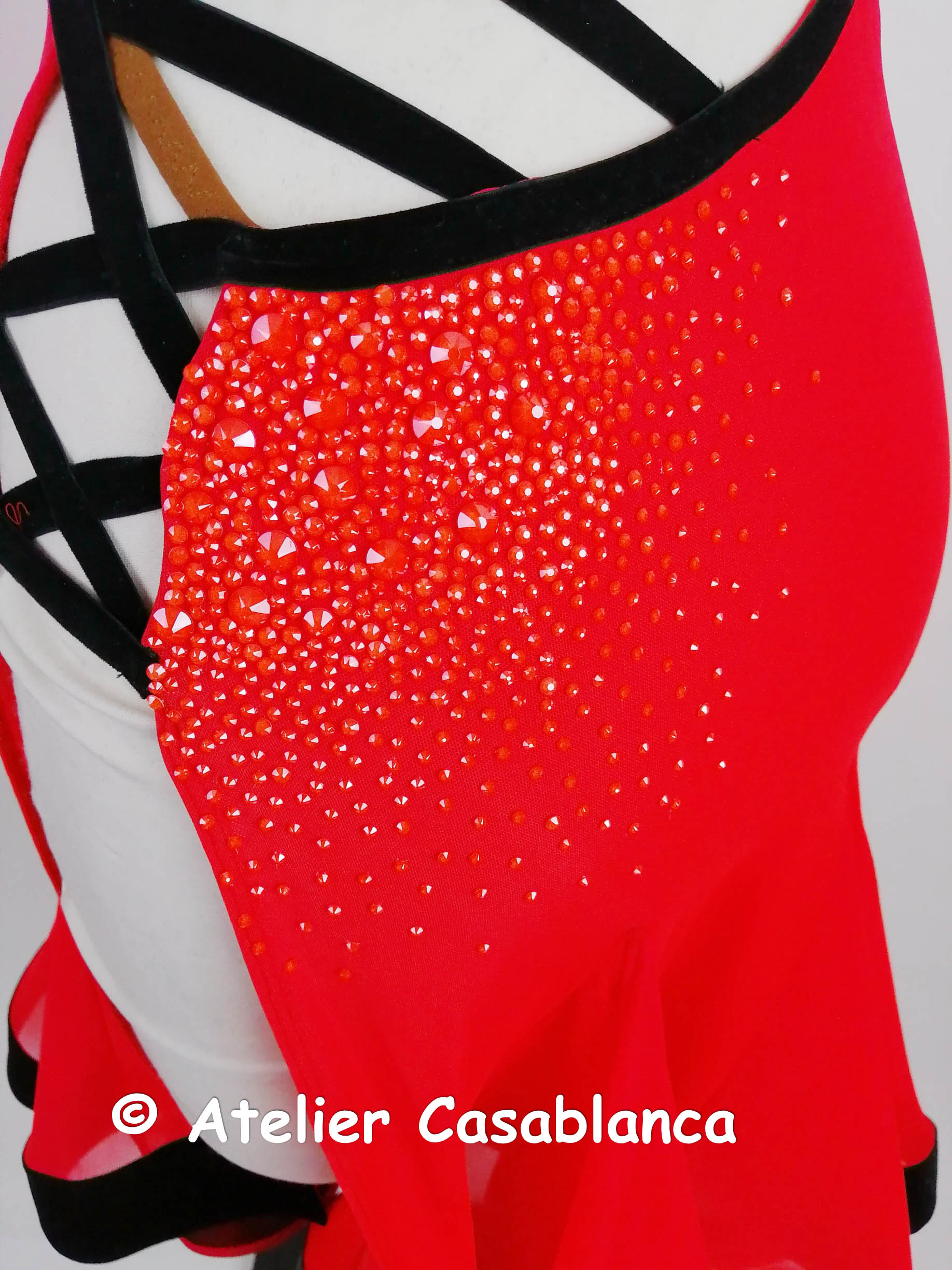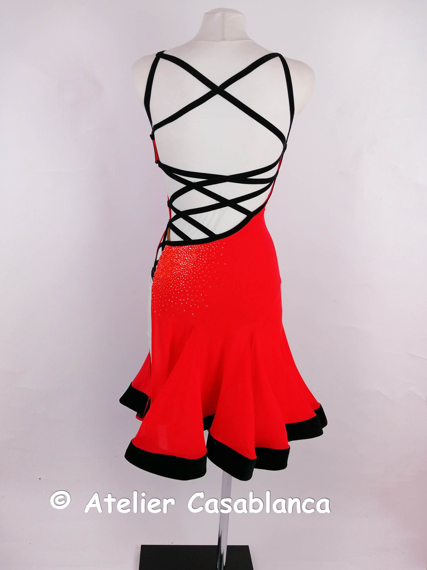 小柄で細身の方、またはユース、ジュニア選手にお勧めのフレームレッド&黒のラテンドレスです。