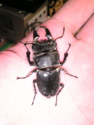昨夜遅く、日課の蛹チェックをおこなったところ。。。初めて作った人工蛹室で蛹化した♀が羽化していました羽化直後の様でした 私は羽化を詳細に見たのは初めてなので、感動してしまいましたその後、無事に羽が収まりました羽が収まる過程を見ることが出来なかったのが残念ですノコギリ♀の様です で、羽化シリーズですが。。。羽化35頭目~最近のお約束、ノコギリ♂(小歯型)ですそして36頭目は。。。掘ってみるとコロンと黒い♀が。。。ヒラタ♀~~ 3種目となりました 正直なところ、コクワ、ノコギリで打ち止めなんじゃないかと思っていましたが。。。今後が楽しみになってきました~~♪ヒラタ♀が確認できたので、そこそこ大きめの幼虫をあわてて菌糸に移しました。(羽化オオクワの中古瓶...)手遅れかもしれませんが。。。次はヒラタ♂を期待です!