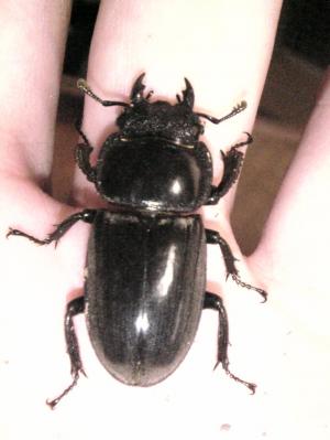 前々回の日記に書いた一瓶で成立したペアの話。2頭は蛹で掘り出し、それぞれ人口蛹室で管理していました。「これは許婚だな」ということで羽化を楽しみにしていたのです...そして。。。3日前の深夜(古くてすみません^^;)、帰宅後チェックしてみると。。。先に♀の方が羽化し始めていました♪「姉さん女房かぁ~」と思いつつ様子を見てみると。。。んん~~、これは?なんか頭が黒い様な気が...少ししてから見てみると。。。 やはり!ヒラタの♀でした。♂の方はまず間違いなくノコギリです。。。許婚だの、ブリ確定だの勝手に思い込んでいた自分が恥ずかしいです2頭目のヒラタ。嬉しい誤算と言えなくもないのですが複雑な気分です ついでなので、羽化の経過を載せておきますね。 とまあこんな感じでした。しかし、良く見てみると。。。つぶらな瞳(当然といえば当然ですが...)といい秋茄子(最近はまっています♪)を連想させる色合いといい。。。結構かわいく思えてきましたよ~単純なものですね^^;