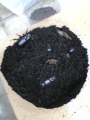 今日は久々の休日だったので、産卵セットの確認です。まずセット3回目のパプキンから~1回目セットの際にケース側面に幼虫を確認したのですが、そのまましばらく放置。いざ割り出してみた時にはきれいに消滅。。。。2回目は産卵木もセットしたのですが、ボウズ。。。。3回目となる今回は1回目同様にマットのみでセットしてみました。結果は...辛うじて2個の卵を発見!他にも無いか目を皿のようにして捜索したものの見当たらず。。。とにかく無事孵化を願うばかりです。 で、次はノコギリ~採集シーズンの初期に♂を1頭採集したのですが残念ながら早世。。。。その後は♀しか採集できず、同産地だからいいだろうと4頭まとめてセットに投入したものです。このケースもしばらく前に側面に幼虫を確認したもののついつい放置。。。さて、結果は...3卵、1幼虫。。。そして2♀が☆、2♀はかなり弱弱しい状態でした。 実はこれ、8月29日にセットしたケースでしたあまりにも放置し過ぎた様です。もう11月下旬ですものね。。。 同日にセットしたヒラタも確認したのですがボウズ。。。♀は☆になっていました もっと飼育の経験値を上げなければ、満足ゆく結果は得れそうにありませんね