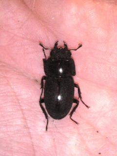 もはや日課となった感のある近所ポイントのチェックです。今日も家族3人で出掛けました。時刻は22:00頃。明日の仕事を考えると厳しい時間ですが、今年採集した2頭のヒラタはいずれも22時台であるという息子の主張により少し遅めの出発となりました。幸い先行者の姿も見られず、意気込み充分に捜索開始。結果は...昨日までとは違い、妻および息子は1頭も発見できず私が合計5頭を発見しました。しかも、今日発見した5頭はいずれも高所のものばかりでありました。よってまたもや写真を撮ることは出来ませんでしたひょっとしたら装備を持たない先行者がいたのかもしれません。発見5頭中、最初の4頭は割りと立て続けに確認できたのですが、残念ながらうち3頭の落下場所が確認できず取り逃がしてしまいました。確保できたのはコクワ♂(小型)1頭のみとあまりに寂しい状況です。妻、息子ともに発見ゼロであり、私も4頭中3頭を逃がしてしまうという不手際で、断念して帰ろうと考えていたところ、どういうわけか次々と採集者が現れました。「見つけられたら悔しい」という妻の言葉に一同奮起し、そのまま同じ反復確認を数回続けていたところ、またも私が5頭目を発見。またもや高所での発見ですが、ほぼコクワでないことが明白な黒い個体。地面を2人体制で照らさせ、慎重に掻き落としまして無事に確保。50mm弱 ヒラタ♂結局、本日の採集はこれにて終了数は物足りませんが粘りが功奏したこと、22:00頃のヒラタ採集率100%が維持できたことで良しとしましょう それにしても今日のヒラタは、今年1頭目のヒラタとほとんど同じ体長なのですが、体形が微妙に違います。よくオオクワなどで極太血統とか聞きますが、こういうのは他種でもあるのでしょうね右側が今日の採集個体。頭幅のわりに顎幅が太めに見えます 本日の採集結果 ヒラタ ♂1、コクワ ♂1気温 21.5℃ 飛んでいたので2匹持ち帰り、裏の小川に放しました