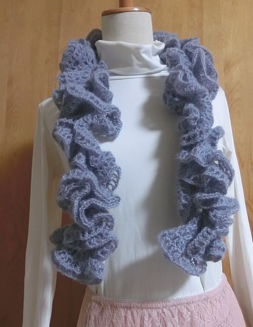 使用糸 : ハマナカ アルパカモヘアフィーヌ  ブルーラベンダー 3玉