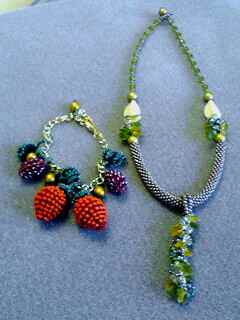 1日レッスンでした。いちごのバックチャームとキウイネックレスを製作。
