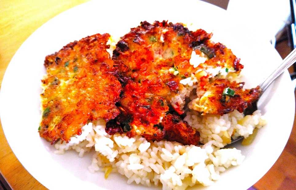 私たちは玉子を使った お焼き? と言うか具だくさんの玉子焼き?