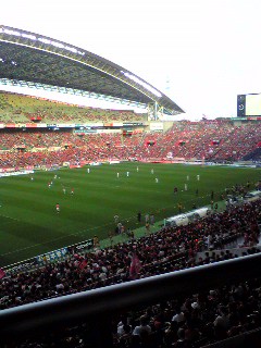 手書きハート皆さんレッズファンでかなり盛り上がっていましたちぃ~もスタジアムの凄い熱気に以外にも熱心に応援していました。飲み物お弁当控室まであり小さい子供連れにはかなり助かりましたウィンク試合は残念ながら同点~でもテレビとは違う迫力でとても楽しかったスマイル