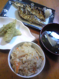 筍の天ぷら(衣に青のりを入れて揚げ塩で頂きます)