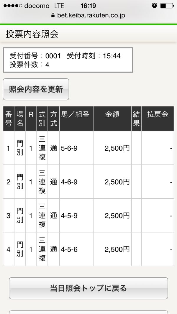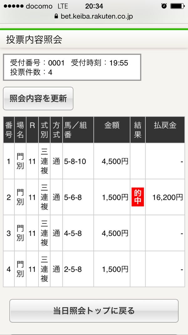 1 −10000円 2 +9750円 3 −9000円 4 −10000円 5 +23000円 本日+3750円 通算−1350円
