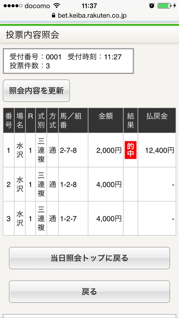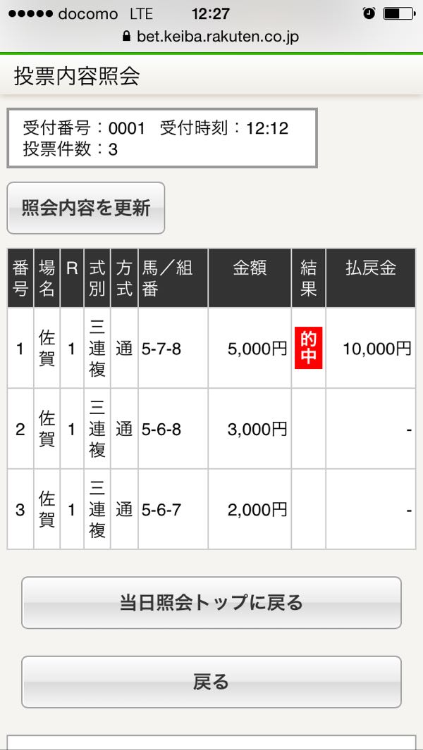 1 −20000円 2 +3000円 3 −10000円 本日−27000円 通算−148040円