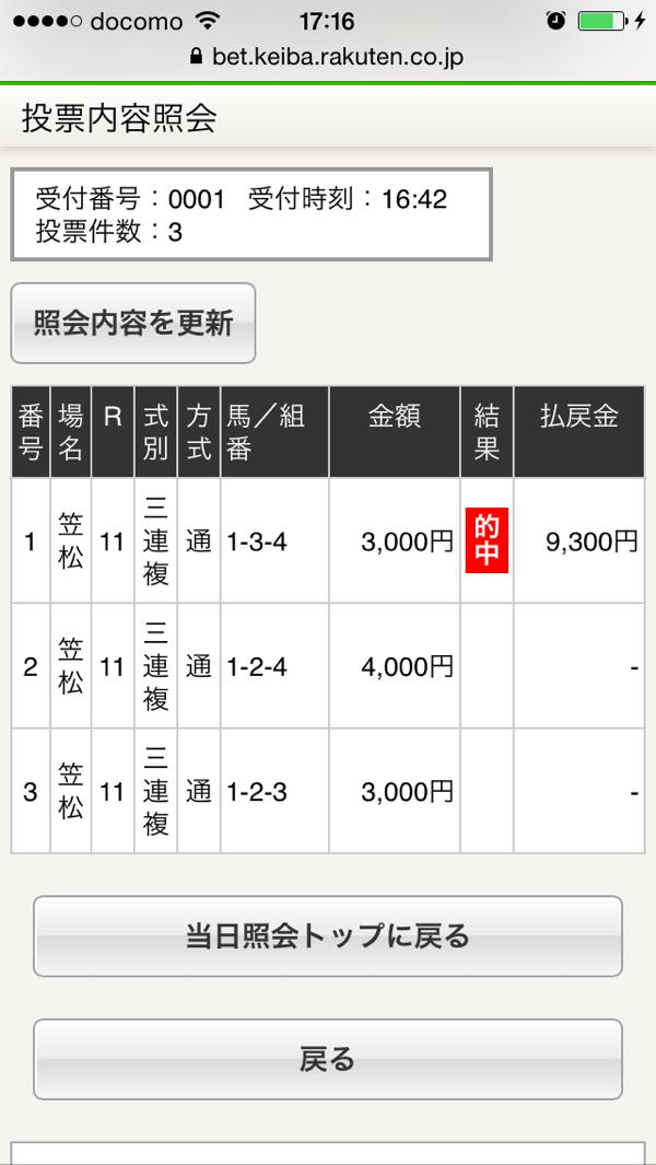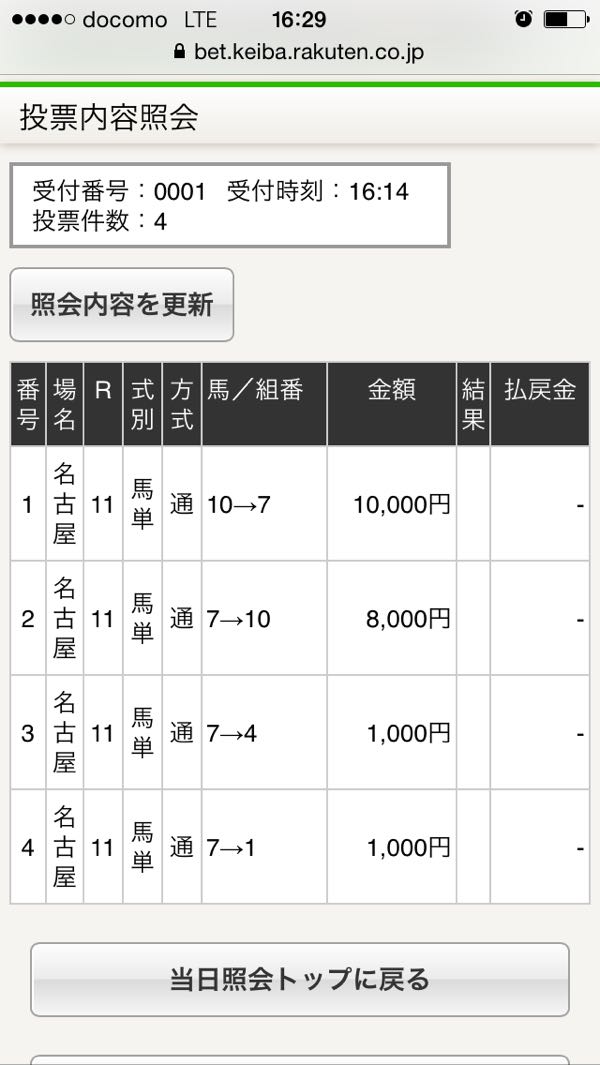 1 +1000円 2 +1000円 3 −10000円 4 −10000円 本日−18000円 通算−176490円