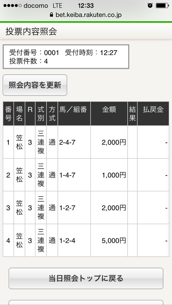 1 −1200円 2 −800円 3 −800円 本日−2800円 通算−185520円