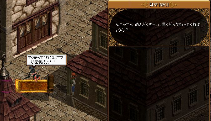 ずっとエイプリルフールのために嘘を考えて途中まで書いていましたがPCの強制により全て消えてしまいました(・∀・;)来年こそは。。。wwいや、まず来年もやってるのかな?ww問題はそこだろうなぁwとりあえずRSに戻ってといってもバイトとかで全くINできてないのでとくに書くこともないのですがwwまぁしいていうなら最近RS内でちょっとケンカしちゃったくらいかなあんまり争い事は好きではないんですがね。。。その人もそんなに悪い人じゃないんですがしつこいので私もつい カッ となってしまい。。。その一部分のSSがあるのでちょっと乗せますがお見苦しいかもしれませんので気分を害した方は申し訳ないですそうです、ケンカ相手はあのロマですw石を買いに行ったらなかなか売ってくれないんですよねぇ。。。まぁ一人でなに茶番をやっているのだというねwこれを見てのとおりINしている間は基本暇ですww最近更新率低いので今日バイトから帰ってきたらキャラ紹介でも兼ねてちょっと書きますので見てやってください^^まぁキャラ紹介という名の自分のキャラの記録を残すためですがね^w^さて今日もバイト頑張ってきますか・・・でゎでゎ フリフリ ヾ(・д・。)マタネー♪
