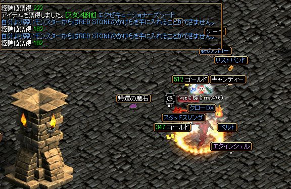最近IN時間だけ長くレベルが上がっていないkagrraです(;´・∀・)ゝ”いや~とりあえず初めてなことが多かったwwフォリンで狩ってたら初SUが出たりリアだけで塔秘密をいったり塔のワイトを赤でソロしたりwwやっぱ男は赤狩りだn(ry赤くないと狩る楽しみがないwwだが赤で自分が狩られるとテンションがた落ち(´・ω・`)ショボーンこんな品までドロップしちゃうしwwこれって良品なのか(○-`д-)!?そういえば運っていつまであげ続ければいいのやら・・・どんどん敵が堅くなってソロもしんどく感じるし。。。。まぁとりあえずランサ@2レベで運が2000到達だww秘密頑張るぞ←ソロ頑張るぞっとwwwwってかソロ嫌いなのでペアできる方募集wwwwソロって寂しくて・゜゜・(/□\*)・゜゜・まぁとりあえず金稼ぎのためにソロ頑張らないと(○・`ω´・)持ち金がとうとう5mきったしねwww頑張りますwwでゎでゎ今日はこの辺でバーィバーィ(@^0^@)ノ彡☆゚・。・゚★・。・。☆・゚・。・゚