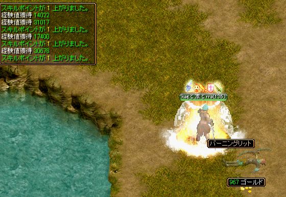 INしていてもPC前にいることの少ないkagrraです。*゜+。(O*'v`*)。+゜狩りとかなにもしてないのでブログのネタが全くないです(・∀・`;)セントで狩りしていると餌がポロリ堅くてしんどいが経験値の良さとDX品の落ちやすいセント か柔らかい代わりに経験値が↑よりは良くないがまぁまぁの経験値のミズナどっちで狩ろうか悩んでますwwどっちで狩っていても町に売りに行けば狩場がとられてるんですが。。。結局狩場なくなればス○ーカーしかないですねwwカミサマのいる中部に行ってみたりあ、SSわすれたぁ。。。。調子に乗って時森に行ってみたり((笑´∀`))ヶラヶラまぁ目玉親父に惨殺され犬には食い殺されネズミを駆除したりv(o・ω・o)ノ゙そんなことばかりしてますwwwさて、ブログのネタが欲しい今日この頃ですwwでゎでゎ((ヾ(*´・ω・)ノ゙)) βуё βуё