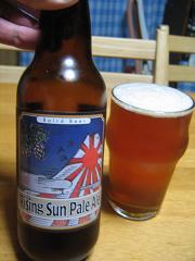 早速今宵のビール、いってみよう!ベアードビール5種類目はこれ、「ライジングサン ペールエール」5.0%いいですな~、このすっきりとした柑橘系の香り!ついつい飲むペースが早くなります。後から来るほんのり甘い風味がまたいい感じ。でもこの柑橘系の香り、なんか独特の風味がするな~、と瓶のラベルを見たら「シトラス系のホップの香りが・・・」と書いてある。そうか、シトラスか~・・・あれ?シトラスって良く聞くけどなんやろう?(整髪料とかでよくありますね)早速ネットで調べたところ「だいだいの未熟果から抽出される」とのこと。「だいだい」ってよく搾ってポン酢にいれるあれやね、確か。うんうん、ちょっとミントみたいにスーッとする香りっていうことなのかな?このビールもとってもさらりと優しい味わいで、ナイスビール出来ました!ベアードビール、残るはあと1種です。人気ブログランキング←応援有難うございます!にほんブログ村 酒ブログ←応援有難うございます